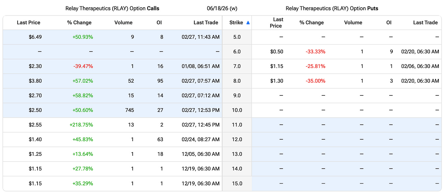 The price action implication into the catalyst is important: Relay is not entering ASCO with a forced-financing narrative. That means the stock should trade primarily as a clean adjudication of whether the 400 mg BID fed dose validates the earlier efficacy signal. If ASCO meaningfully de-risks best-in-class positioning, upside should not be capped by imminent dilution risk.