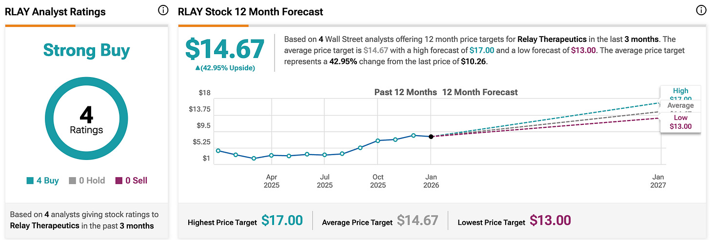 The best near-term outcome for RLAY is a practice-relevant ASCO dataset: ≥9–10 month durability at 400 mg fed, broad mutation consistency, and clean metabolic tolerability that supports sustained exposure. That would expand the perceived pathway ceiling and support premium positioning ahead of Phase 3.